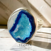 Selene Blue – Anillo de Drusa Azul de Botsuana en Plata 925